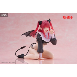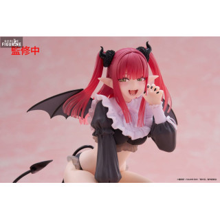 Here is the official figure of Marin Kitagawa in her succubus Liz outfit, directly inspired by the popular series My Dress-Up Darling (Sono Bisque Doll wa Koi wo Suru). Standing about 13 centimeters tall, this PVC figure is part of the Desktop Cute collection, produced by Taito. Marin, a cosplay enthusiast, is depicted in a playful pose that perfectly captures her outgoing and energetic personality. Her succubus outfit, featuring a black and white ensemble, is intricately detailed, including her small black wings, pointed ears, and heart-shaped tail, giving an adorable and charming effect.