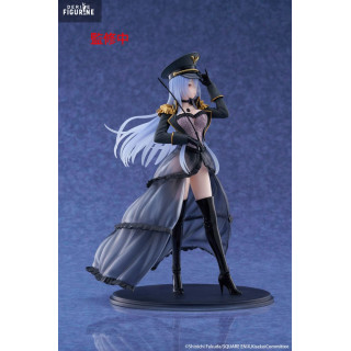 Every costume detail is faithfully recreated: gold-accented cap, structured epaulets, tailored sleeves with military trims, and a flowing coat with dynamic folds. The corset softens the outfit’s rigidity, while her focused expression adds authenticity to the character portrayal.