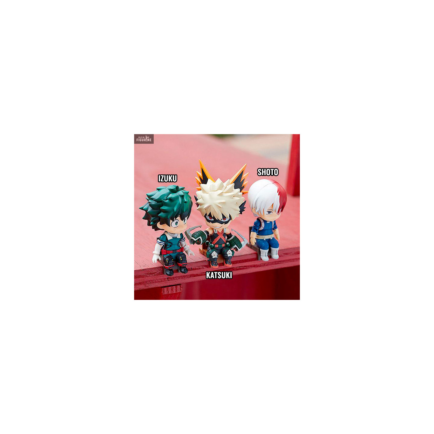 Official figure of your choice between Shoto Todoroki, Katsuki Bakugo or Izuku Midoriya in PVC which measures approximately 9 centimeters high. It is from the Nendoroid Swacchao! collection. The manufacturer is Takara Tomy.