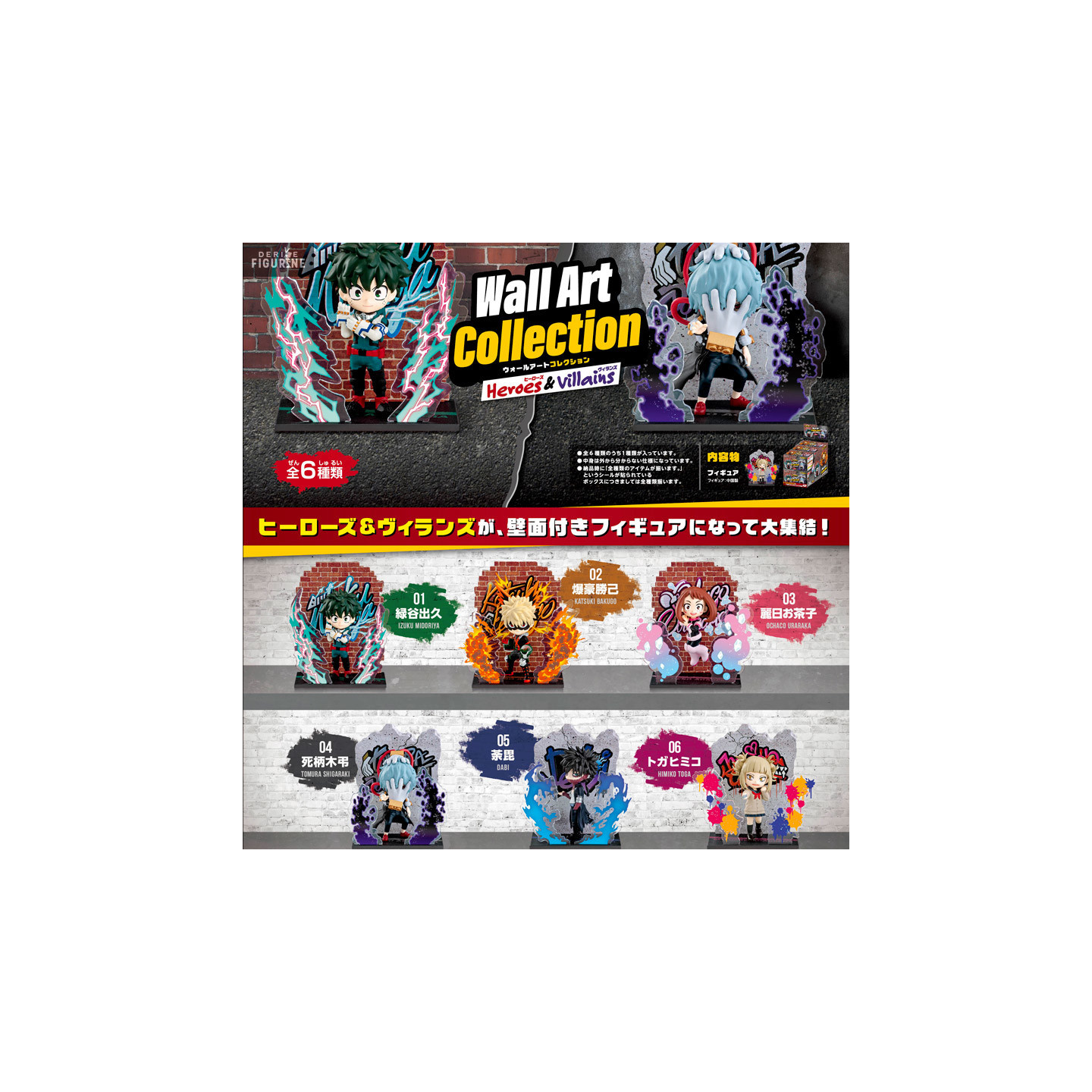 My Hero Academia offers itself a collection of random figurines called Wall Art and you will have the chance to get one of these characters: Izuki, Bakugo, Ochaco, Tomura, Dabi or Himiko. The particularity of the collection is that it brings different effects and that the figurines all have a nice decoration on the back.