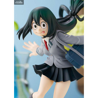 Official figure of Tsuyu Asui in PVC which measures approximately 15 centimeters high. It is from the Pop Up Parade collection. The manufacturer is Takara Tomy.