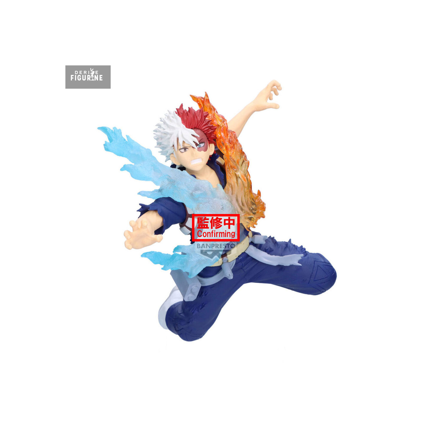 Official figure of Shoto Todoroki, III in PVC which measures approximately 15 centimeters high. It is from the The Amazing Heroes collection. The manufacturer is Banpresto.
