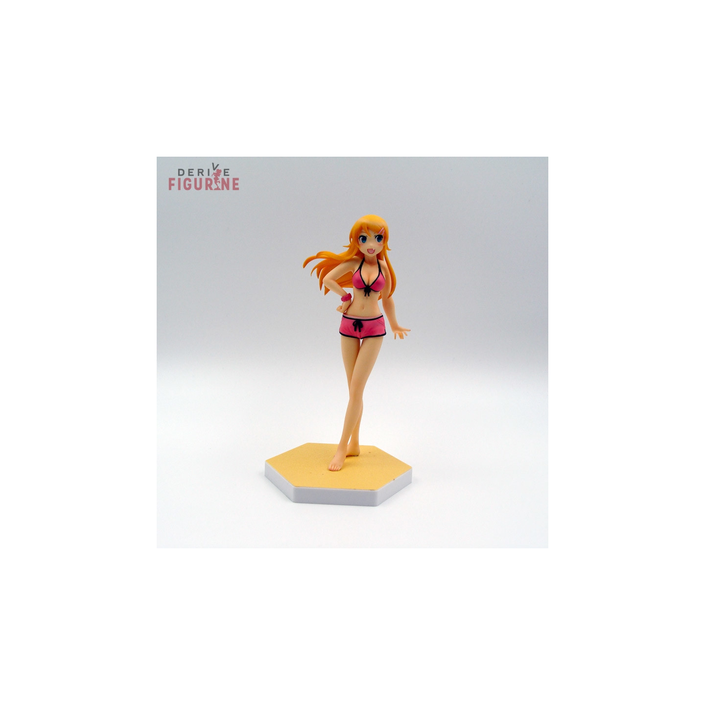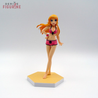 Second-hand and official Kirino Kousaka figure in PVC about 16 centimeters high to scale 1/10. Kirino wears a pink swimsuit and an interchangeable head. This is a second-hand item in perfect condition from the Beach Queens collection. The base has a task as shown in the picture. The manufacturer is Wave Corporation, sold with box in fairly good condition.