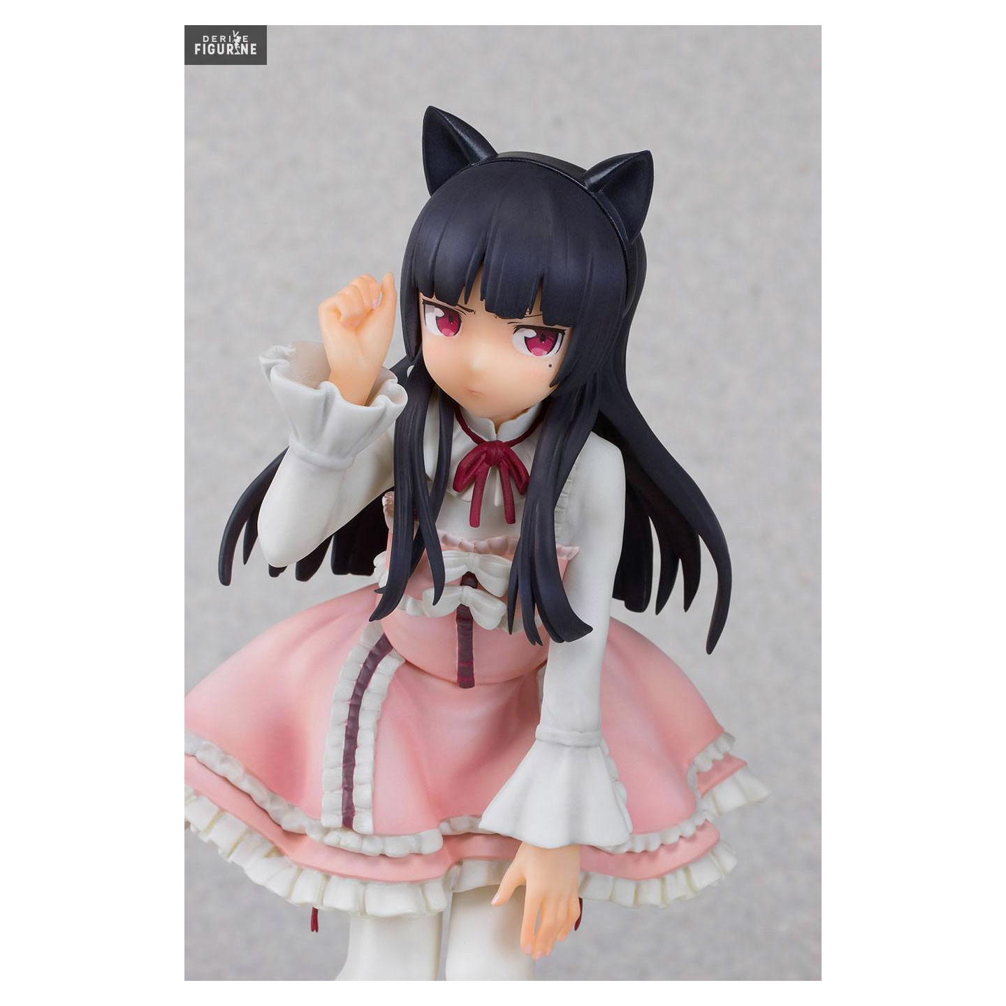 Here is our gothic lolita in a pastel pink dress that fits him like a glove. Add to that her little cat ears and her long black hair and you get a girl too cute. Good cons, we can see that Gokou Ruri is not really at ease because this great shy has cheeks a little red.