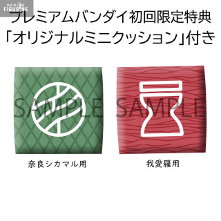 Gaara maintains his stern expression and signature "愛" forehead mark, while Shikamaru sits with crossed arms and a laid-back expression, true to his personality. Both come with matching themed cushions (green and red) for added display charm.