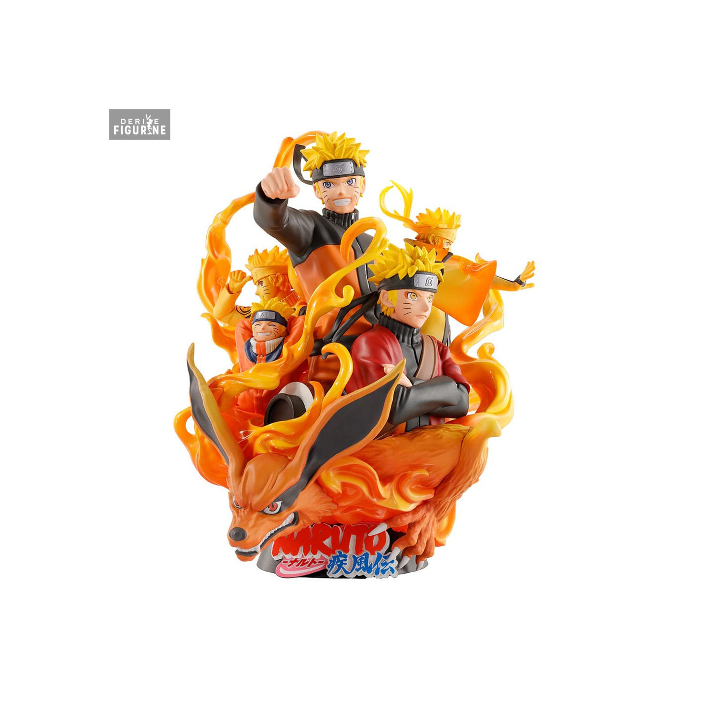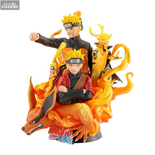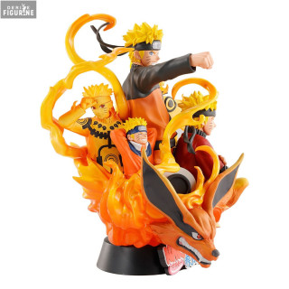 This PVC figure of Naruto Uzumaki, standing approximately 15 centimeters tall, is part of the Petitrama DX collection by Megahouse. It captures Naruto's evolution over the years, surrounded by various versions of himself at different stages of his life. The details are impressive, from his determined expressions to the representation of Kyūbi, the Nine-Tailed Fox, accompanying him. This diorama is a dynamic and colorful depiction of Naruto, highlighting his determination and growth as both a ninja and a person.