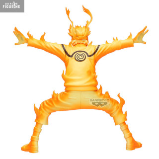 This Banpresto Grandista statue portrays him in his Kurama—Six Paths Sage Mode, where the Nine-Tails’ chakra merges with the Six Paths power. His form radiates an orange aura, with spiral motifs and “9” symbols on his cloak highlighting his bond with Kurama. Flames unfold around his limbs, symbolizing the raw intensity of his ultimate transformation, while his determined gaze stares forward, ready to defend the world.