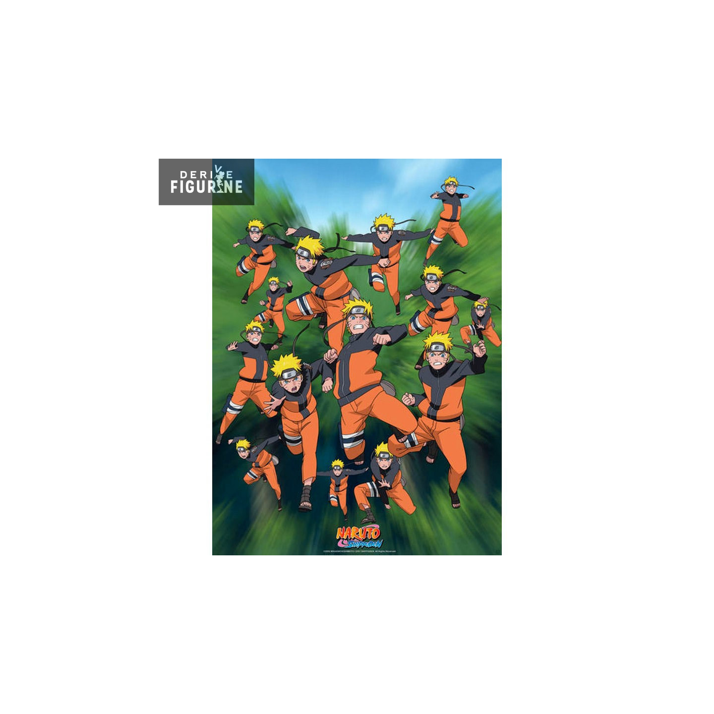 Here is a poster representing Naruto in full technique of multi cloning. This technique allows him to create clones of himself to improve his attacks.