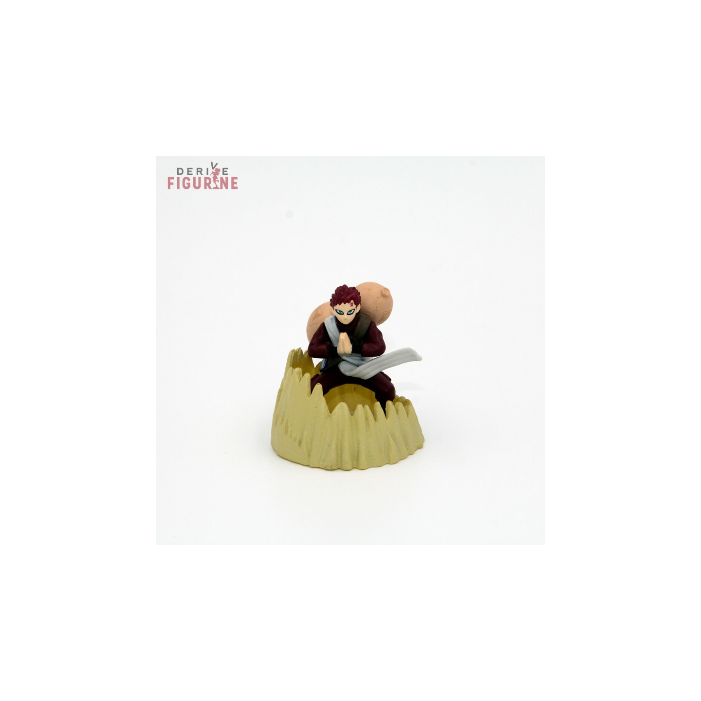 Gashapon second hand and official Gaara in PVC which measures about 5 centimeters high. You can see some sand around him and he's in the air in full concentration, so be careful not to disturb him. This is a second hand item in perfect condition from the Maxi Collection Face Off. The manufacturer is Bandai, sold without box.