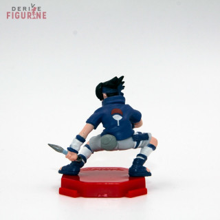 Gashapon second hand and official Sasuke Uchiwa in PVC which measures about 4,5 centimeters high. In a squatting position, a shuriken in the left hand, Sasuke is ready to fight. This is a second hand item in perfect condition. The manufacturer is Bandai, sold without box.