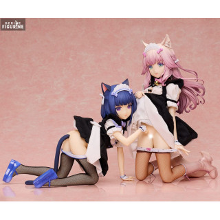 This official figure of Shigure Minazuki, standing approximately 20 centimeters tall and crafted at a 1/4 scale, is a true masterpiece by BINDing. Made of PVC, it features Shigure in a classic black-and-white maid outfit adorned with delicate details such as purple bows and a headband. Her crawling pose, fishnet stockings, and glossy shoes add an elegant and alluring touch to the overall presentation. With impeccable finishes and high-quality materials, this figure is a must-have for Nekopara collectors and fans looking for a piece that is both bold and sophisticated.