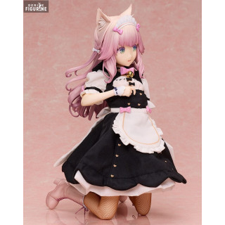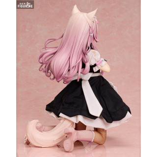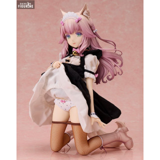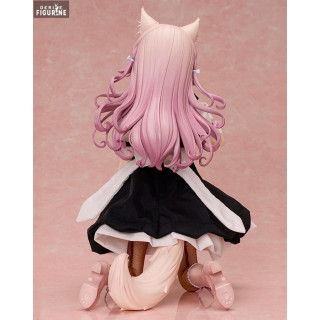 Standing approximately 27 centimeters tall at a 1/4 scale, this figure is a masterpiece crafted by BINDing. Made of PVC, it highlights an incredible attention to detail, especially in her real fabric outfit that adds a luxurious and realistic touch to the piece. Fraise's kneeling pose, combined with her gentle expression and adorable cat ears, makes her irresistibly charming. This figure is a must-have for any Nekopara fan or collector looking for an elegant and unique centerpiece.