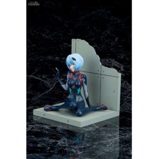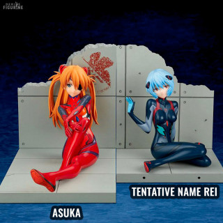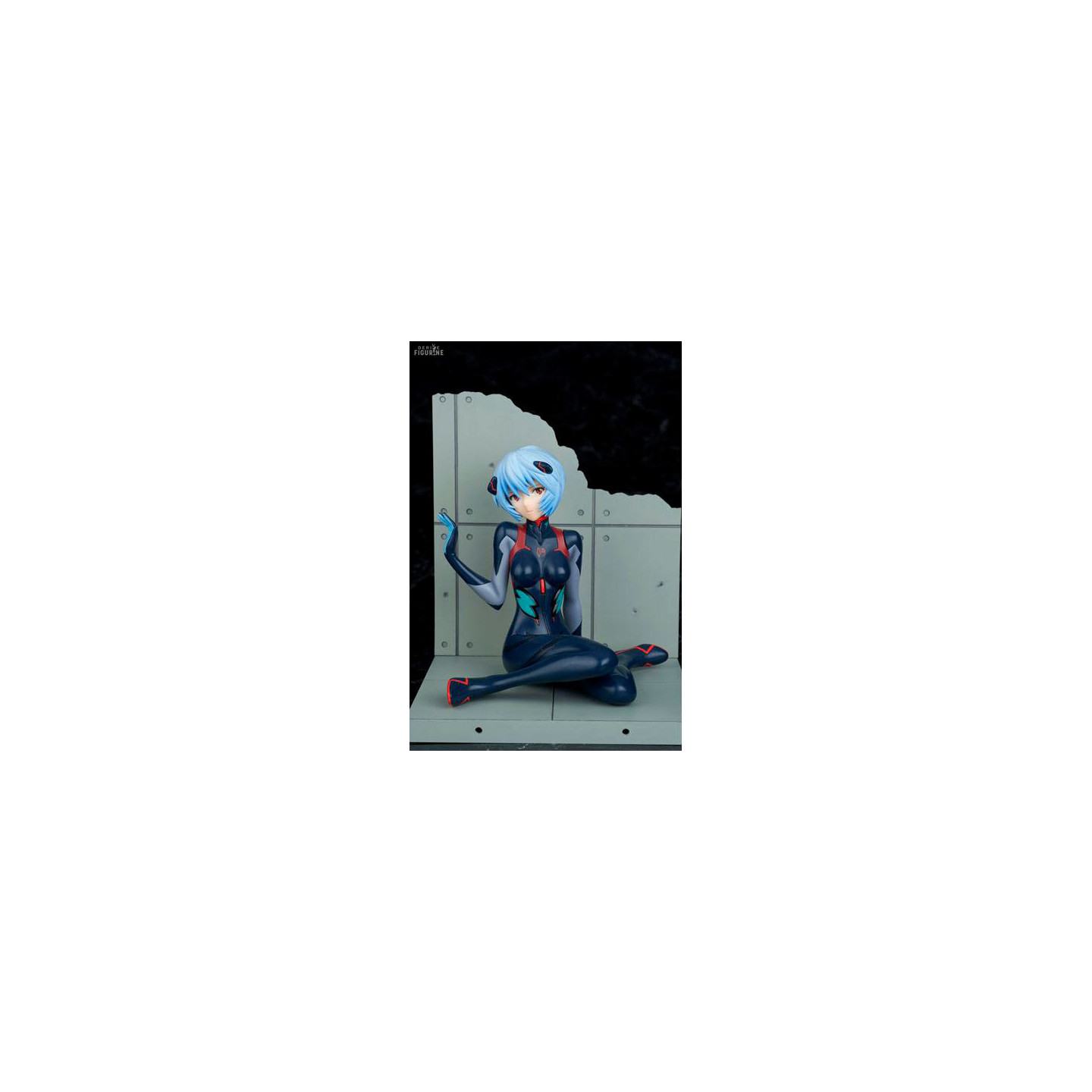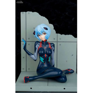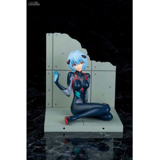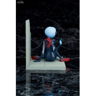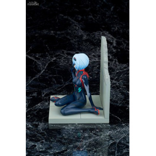 In Evangelion: 3.0+1.0 Thrice Upon a Time, Rei Ayanami—known as Tentative Name: Rei Ayanami—appears in a mysterious and emotionally charged form. This 1/7 scale figure captures her sitting calmly against a crumbling wall, exuding quiet introspection.