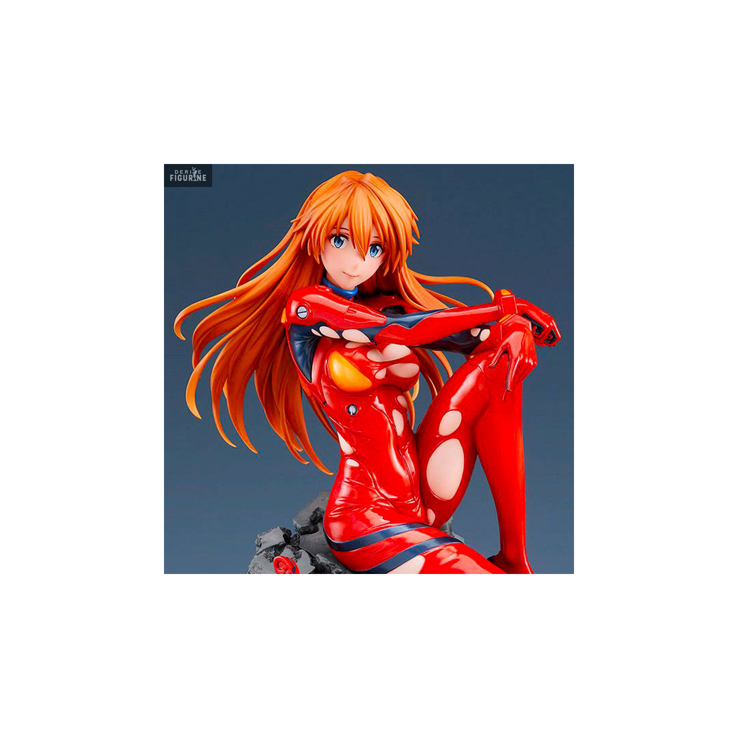 Asuka Langley Soryu is one of the main characters in Neon Genesis Evangelion. She is a little stubborn, but very proud of her good results in piloting Evas. You can see her in her red plugsuit right here. On the other hand, looking a little closer, you will be able to see that it has suffered damage because it has holes everywhere.