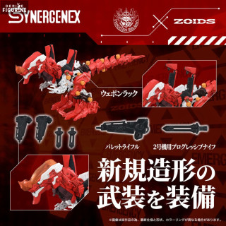Beneath its predatory mechanical look, the Xeno Rex Production Model-02 represents the pinnacle of an unprecedented collaboration: an “experimental” Zoid infused with design cues and technologies inspired by Evangelion units. This model plays the role of a powerful prototype, imagined to replicate the EVAs’ strength and responsiveness while preserving the distinctive bestial machinery of Zoids.