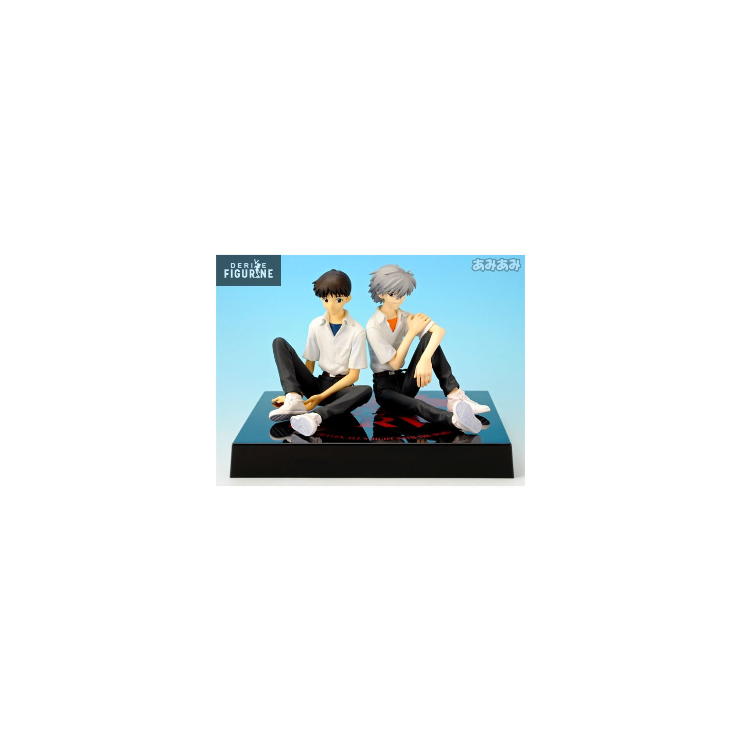 Official Shinji Ikari and Kaworu Nagisa figure in ABS/PVC about 10 centimeters high to scale 1/8, from the ES Series - School Uniform ver. Shinji and Kaworu sit on the floor next to each other and quietly discuss their plans. The manufacturer is Kotobukiya.