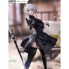 This figure presents 2B in a dynamic pose, turning slightly with her sword ready to be drawn, perfectly capturing her aura as a mysterious and powerful warrior. Her silver hair, masked by her blindfold, adds a touch of intrigue, while the details of her gothic attire and the engravings on her weapon showcase the meticulous craftsmanship of this collectible.