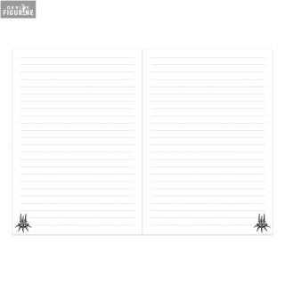 The design is refined and faithful to the universe, with a practical A5 format for everyday writing. The lined interior pages are subtly adorned with a small motif in the lower corner, evoking the symbols of the license. The overall look is elegant and minimalistic, perfectly matching the NieR: Automata atmosphere.