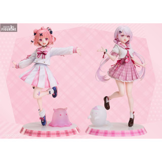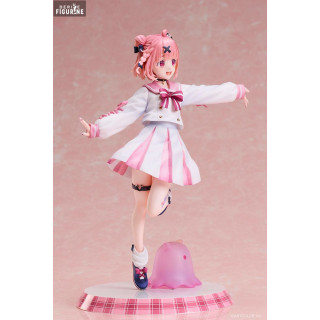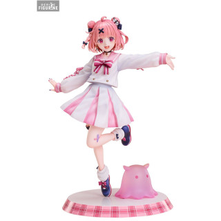 The attention to detail in this figure is impressive. The folds of her skirt, the textures of her clothing and the small accessories are all finely sculpted and painted with care. The presence of its little mascot companion, represented in the form of a pink ghostly creature, adds an extra touch of charm and fantasy to the figurine. The decorated base completes the set, providing a stable and elegant base for displaying Sasaki Saku.