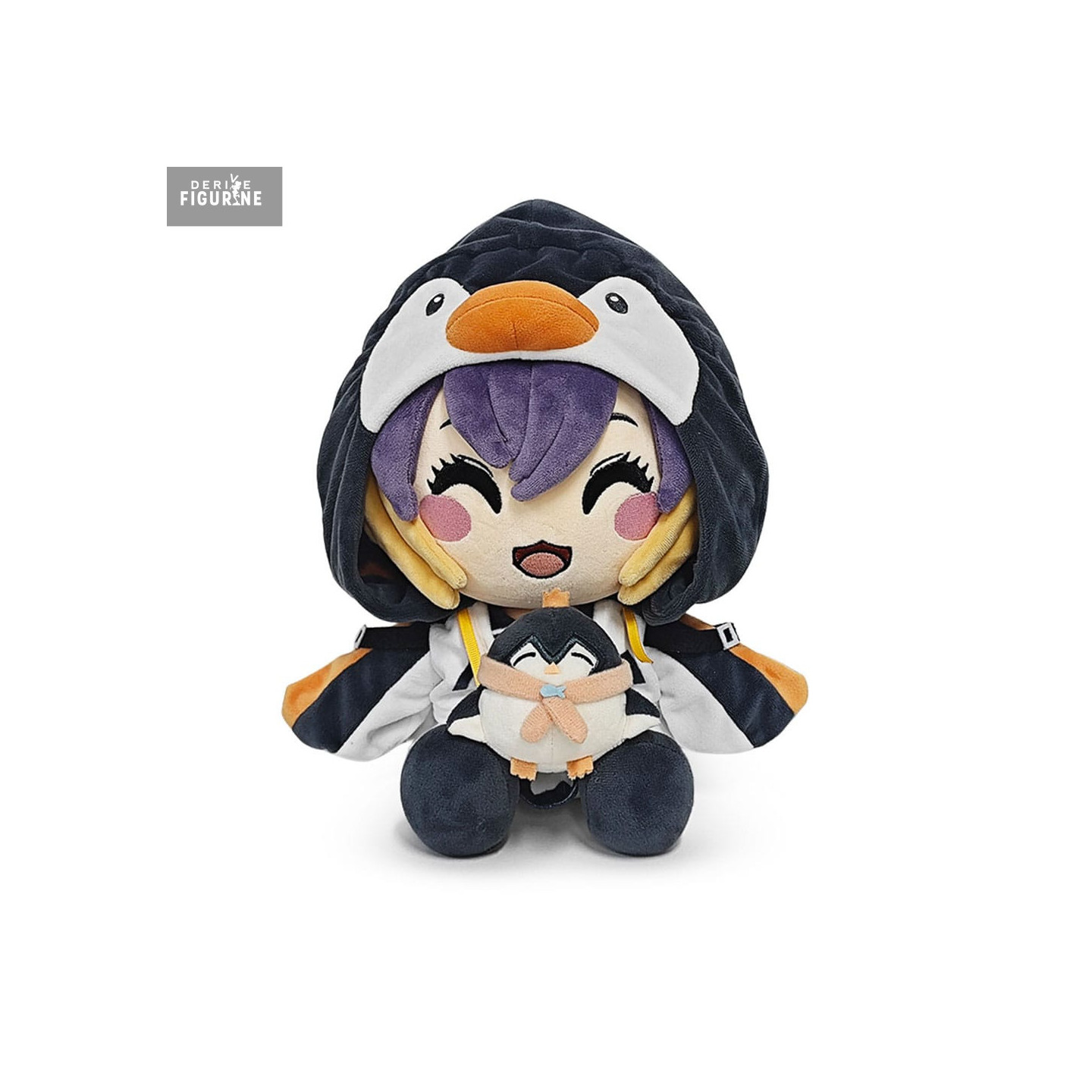 Official Petra plush from the AnyColor – Nijisanji license, carefully designed to capture all the cuteness and charm of the character. Petra is depicted with a bright smile and cheerful eyes, dressed in a black-and-white penguin kigurumi complete with an adorable orange beak on the hood. Her vibrant purple-and-blonde hair details are faithfully reproduced, adding a pop of color to her look.