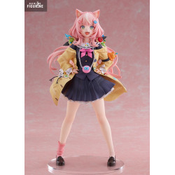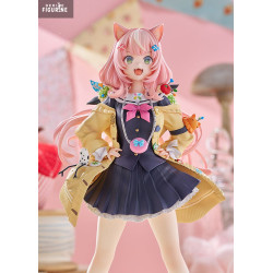 Made of PVC and standing approximately 24 cm tall at 1/7 scale, the figure features finely sculpted fabric textures, especially in the skirt and coat. Decorative elements are sharp and balanced, enhancing the playful and pop-inspired design. A discreet base supports the piece without drawing focus away from the character.