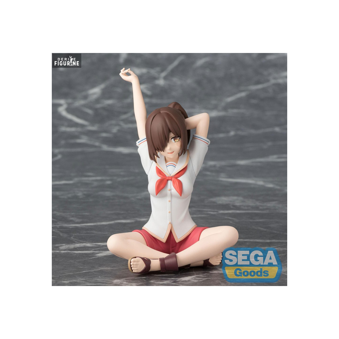 This official Asane Tachibana figure, part of SEGA’s PM Perching series, beautifully conveys her relaxed yet mischievous personality. Standing at approximately 10 cm tall and made of PVC, she is shown sitting cross-legged with one arm stretching casually above her head. Her outfit—an open-collared school shirt paired with red shorts—reflects her more casual and playful nature within the narrative. Her confident smile and relaxed pose make this figure an eye-catching piece for collectors, especially fans of the game’s quirky and irreverent tone.