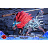 Oki is the wolf form of the warrior Okikurumi. He is a man with a great sense of justice but also impulsive and stubborn. On the other hand, here you can admire him in his lupine form with his mask on his head and Kutoneshirika, his sword on his back. This statuette is really impressive, as much for its details as for its size.