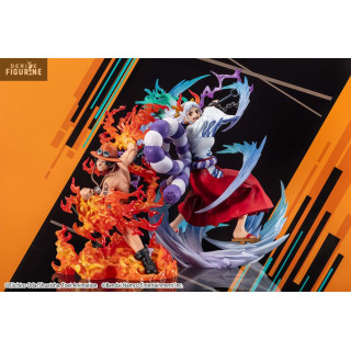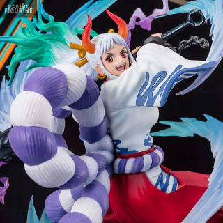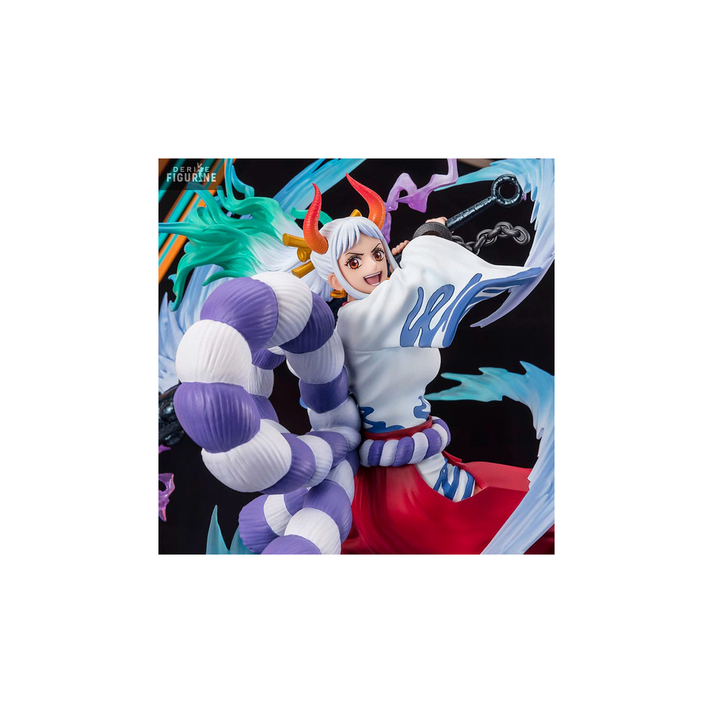 The figure's dynamic and graceful pose captures the essence of Yamato as she launches into action. The meticulous details, from the outfit to the flowing hair, demonstrate the care taken in the sculpting to faithfully reproduce the character as he appears in One Piece. The movement effect adds an extra dimension to the figure, creating a dynamic scene that evokes the vivid world of the anime.