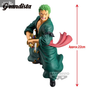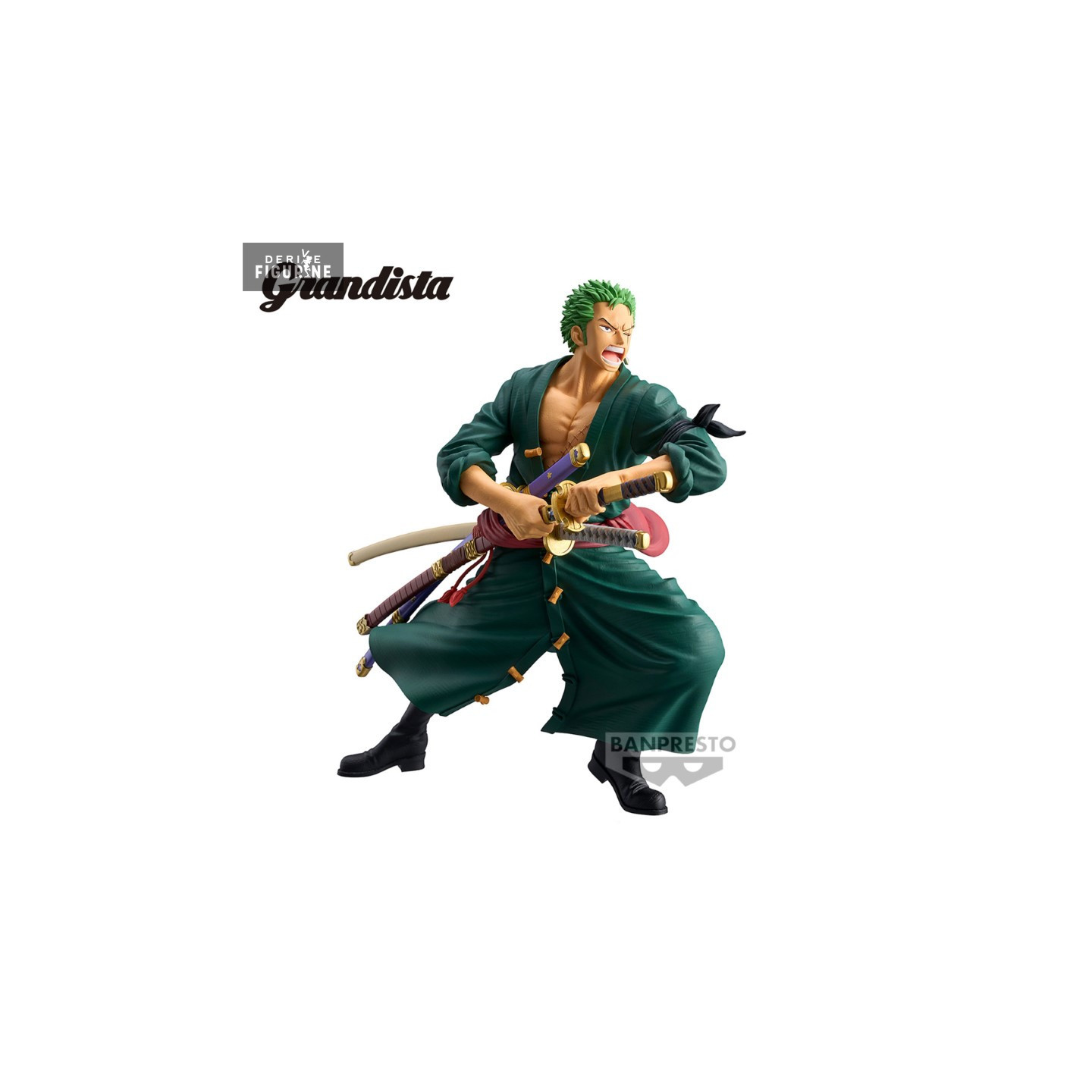 Official figure of Roronoa Zoro in PVC which measures approximately 22 centimeters high. It is from the Grandista collection. The manufacturer is Banpresto.