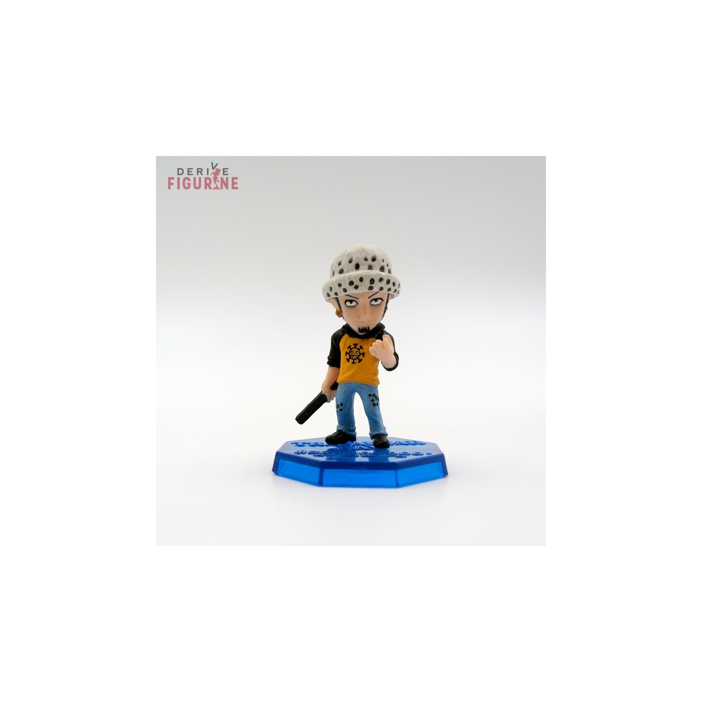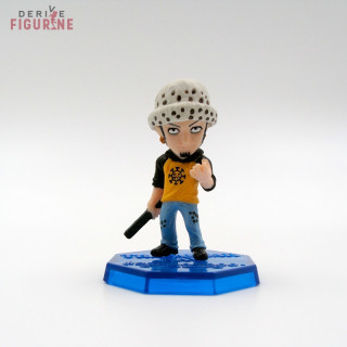 Second-hand and official Trafalgar Law figure in PVC about 5 centimeters high. In view of the look he gives you, it is better not to annoy Trafalgar. This is a second-hand item in perfect condition from the Landing Sabaody! Archipelago! collection. The manufacturer is Bandai, sold without box and without the card.