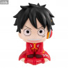 This figure, part of the Look Up collection by Megahouse, depicts Luffy in a seated pose, hands clasped and eyes sparkling with mischief. Standing at approximately 11 centimeters tall, it is ideal for display alongside other crew members or characters from this particular arc. Luffy’s confident smile, combined with his distinctive red outfit, pays homage to his bold character and fighting spirit.