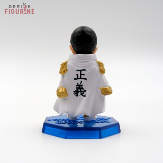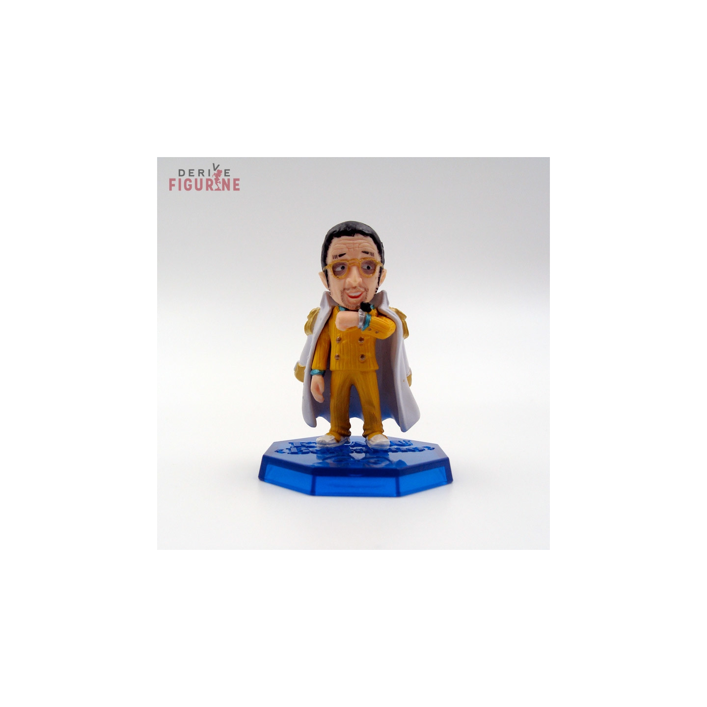 Second-hand and official Kizaru Borsalino figure in PVC about 5 centimeters high. Borsalino is transferring information about you via his escargophone. This is a second-hand item in perfect condition from the Landing Sabaody! Archipelago! collection. The manufacturer is Bandai, sold without box and without the card.
