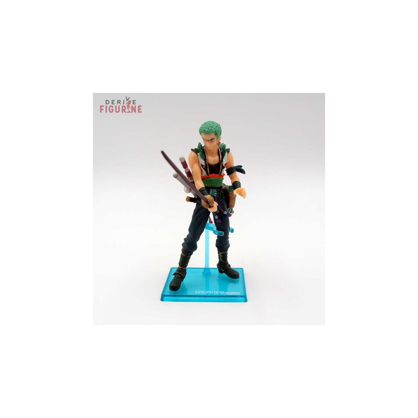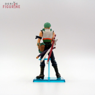 Second-hand and official Zoro Roronoa figure in PVC about 11,5 centimeters high. Zoro draws his sword, so stay away from him. This is a second-hand item in perfect condition from the Unlimited Cruise collection. The manufacturer is Bandai, sold with box in fairly good condition.