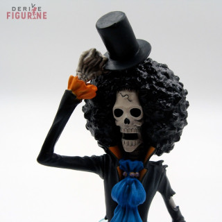 Brook is a skeleton who wants to be of the most class with his top hat, his suit and his crop. In the crew of Luffy, he is the second swordsman alongside Zoro, but it is also and especially the musician of the group. As you can imagine, if Brook is still "alive", it comes from the fact that he ate a fruit of the devil.