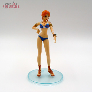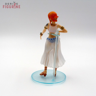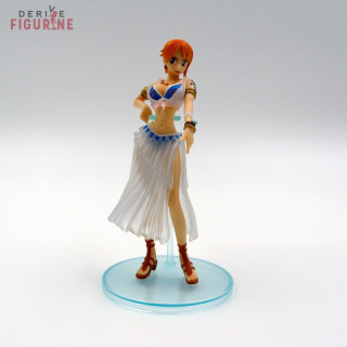 Second-hand and official Nami figure in PVC about 12,5 centimeters high. In this outfit, Nami resembles a belly dancer. This is a second-hand item in perfect condition from the Super One Piece Styling collection. The manufacturer is Bandai, sold with box in fairly good condition but battered on one side.