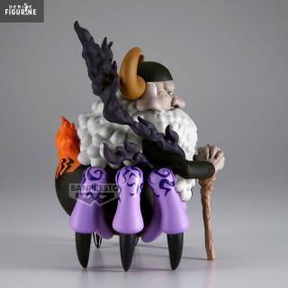Made of PVC, this 13 cm-tall piece boasts refined finishes: the detailed sculpting of beard, horns, and cloak folds is complemented by precise matte paintwork. The semi-translucent aura spirals add a dramatic yet restrained effect, underscoring Saturn’s solemn gravitas.