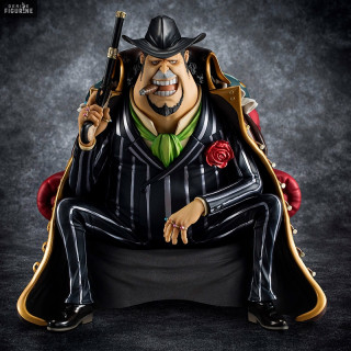 Capone "Gang" Bege is a very dangerous pirate who is part of the organization of the Eleven Supernovae. With his mafia american look like Al Capone, Capone is from the West Blue Sea and he leads the Fire Tank team. In short, this figurine shows us installed in his chair and we clearly do not want to be in front ...