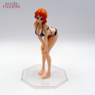 Megahouse and his POP collection tend to have enormously produced swimsuit versions with the characters from the One Piece work signed by Eiichirō Oda. Here is a new Nami we have and she is wearing a very nice blue swimsuit.