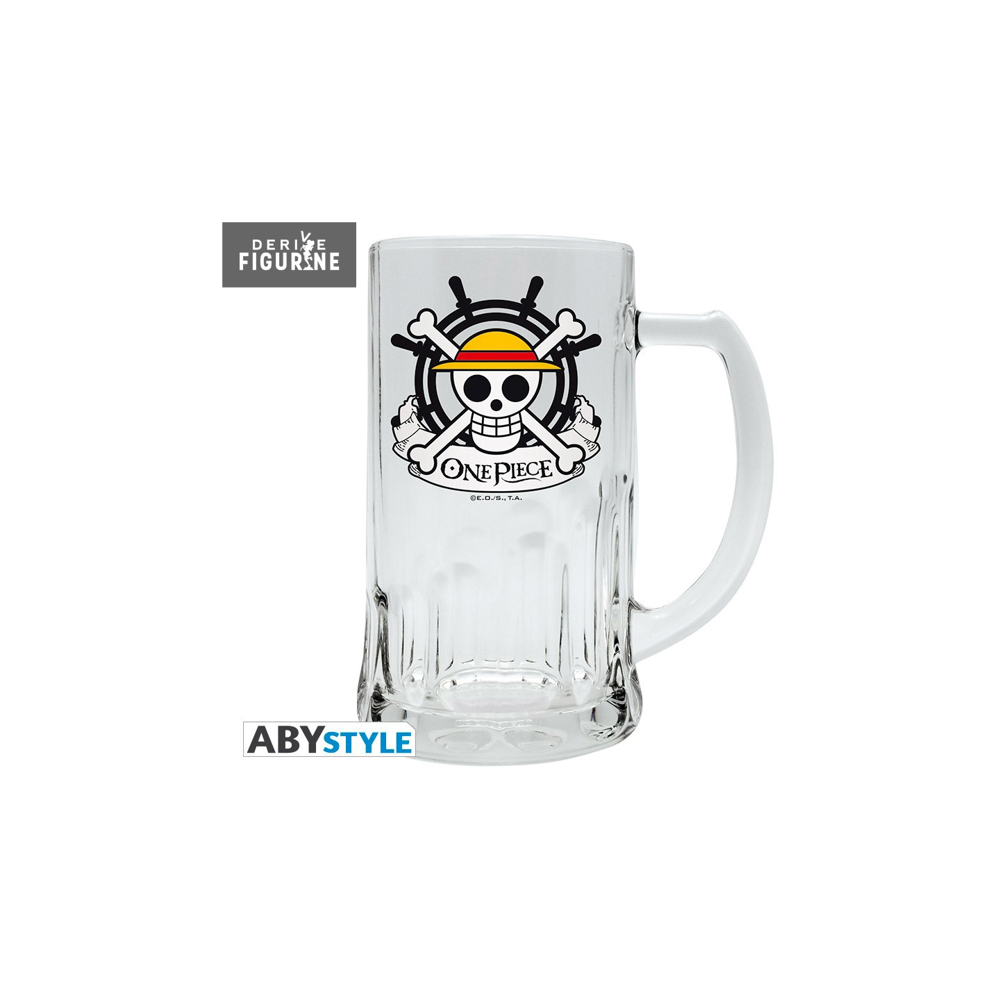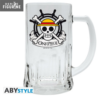 One Piece tankard, with emblem of the pirate in the straw hat. It measures about 16.5 centimeters high, with a diameter of 8.5 cm and a capacity of 50 cl. Can be used in the dishwasher. The manufacturer is ABYstyle.