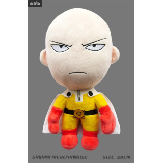 Saitama plush which measures about 28 centimeters high. The manufacturer is Sakami Merchandise.