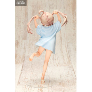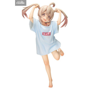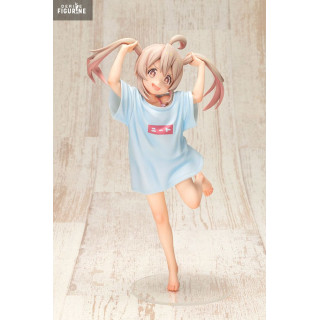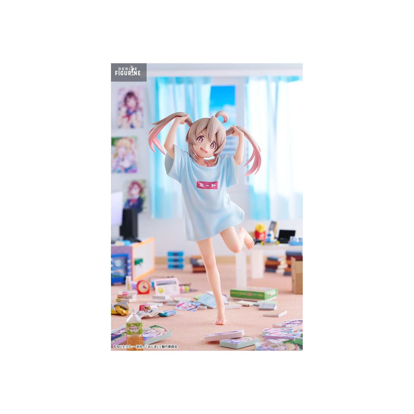 This PVC figure, standing approximately 25 centimeters tall at 1/6 scale, captures Mahiro in a dynamic and cheerful pose, wearing an oversized casual t-shirt. The loose-fitting shirt, with a simple design, perfectly reflects Mahiro’s candid and slightly embarrassed personality. The playful smile and lively posture of the figure add an authentic touch, making this model true to his appearance in the anime.