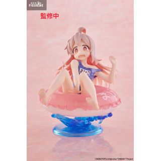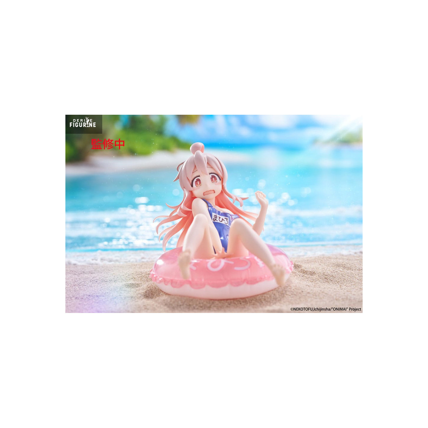 Manufactured by Taito, this PVC figure stands approximately 10 centimeters tall and belongs to the Aqua Float series, known for its aquatic and summer-themed figurines. The attention to detail is impressive, from the gradient pink and white tones of Mahiro's hair to the subtle transparency of the swim ring. The blue wave-like base completes the scene, adding a refreshing and dynamic dimension. A perfect addition for fans of Onimai: I'm Now Your Sister! and collectors of cute and summery figures.