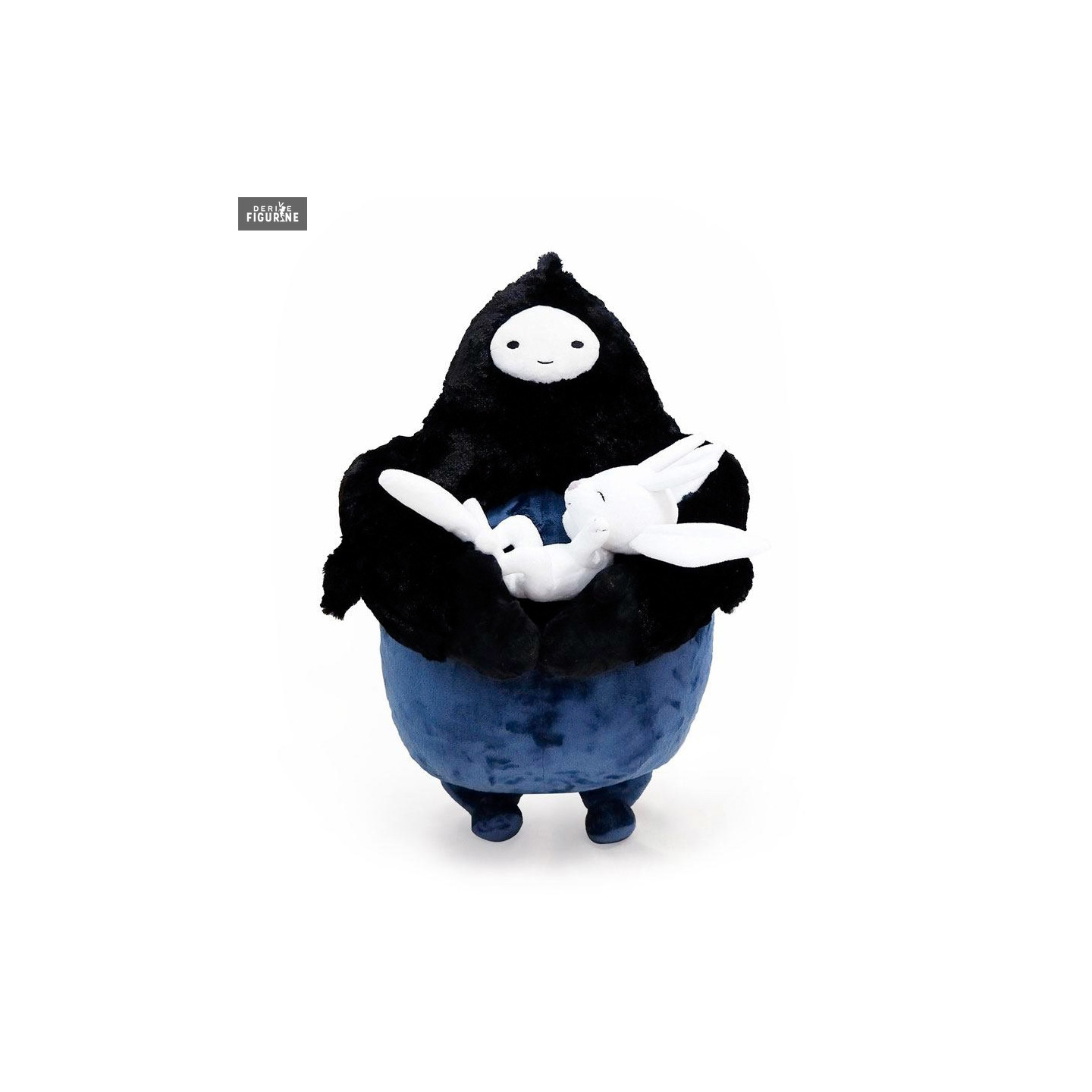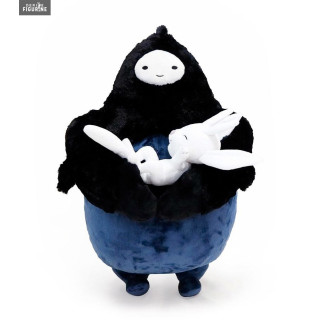Here are two soft toys from the video game Ori and the Blind Forest. The first and most impressive is Naru, a creature with a very soft black coat. The second is obviously Ori, a little white being, hero of the game. Besides, you can notice that Naru can hold Ori in his arms, as on the jacket.