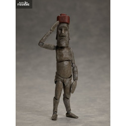 Special Elements: stone-effect texture, articulated body, stylized design inspired by Easter Island statues