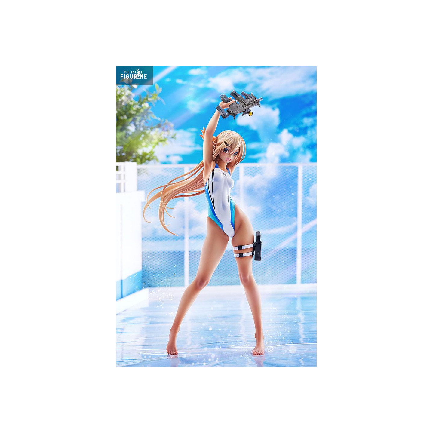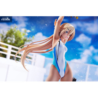 Official figure of Kouhai-chan, Swimsuit of the Swim Club Blue Line in PVC which measures approximately 29 centimeters high, scale 1/7. The manufacturer is Amakuni.