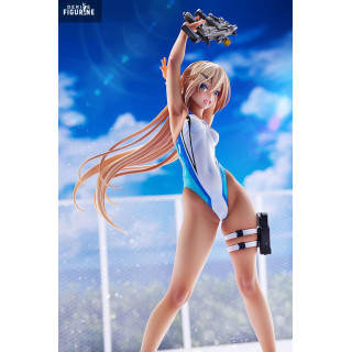 Combining athletic flair with combat readiness, Kouhai-chan returns in her Blue Line version, offering a fresh twist on her already iconic look. From the original world of Arms Note, this character stands out as a battle-ready beauty—armed with military-grade weapons while dressed in a competitive swimsuit. It’s this surprising contrast that makes her so captivating.