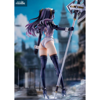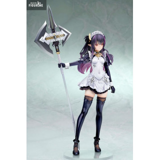 This stunning Ques Q figure, at 1/7 scale and standing 24 cm tall, captures M.A.I.D Mary in a dynamic pose, wielding an intricately detailed halberd. Her maid uniform, adorned with metallic details and elegant embroidery, contrasts sharply with her combative stance, giving her a uniquely captivating presence. The dark color scheme, accented with subtle shades of violet and gold, enhances her commanding charisma. Made from PVC, this high-quality figure is a must-have for collectors looking to add a striking centerpiece to their display.
