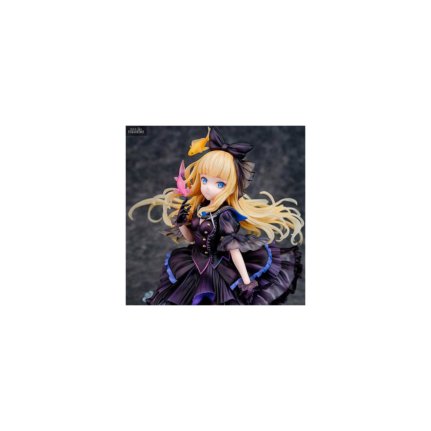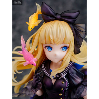 This figurine is based on an illustration by Fuzichoco and it represents a young blonde woman in a really pretty gothic lolita style black dress. She has a doll face and her base looks like water, with bubbles rising to the surface, and the nice little detail is that she has two little fish swimming around her face.
