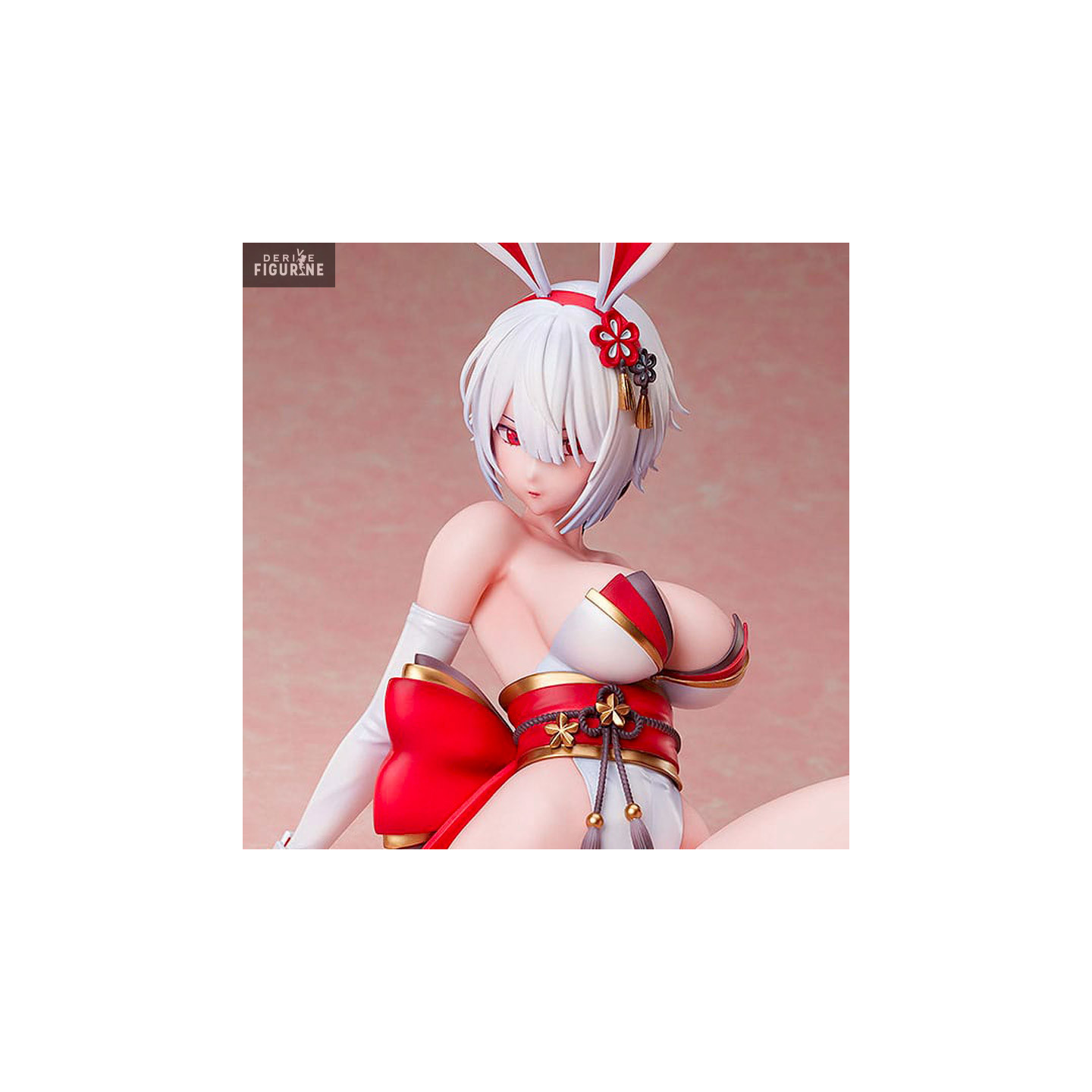 Shiraume is a beautiful woman who could be said to be albino because her skin is very fair, her hair is white and her eyes are red. This in no way detracts from her beauty, quite the contrary and you can admire her in an outfit that is light to say the least, with a belt and a big bow in the back. Finally, she wears a headband with bunny ears.