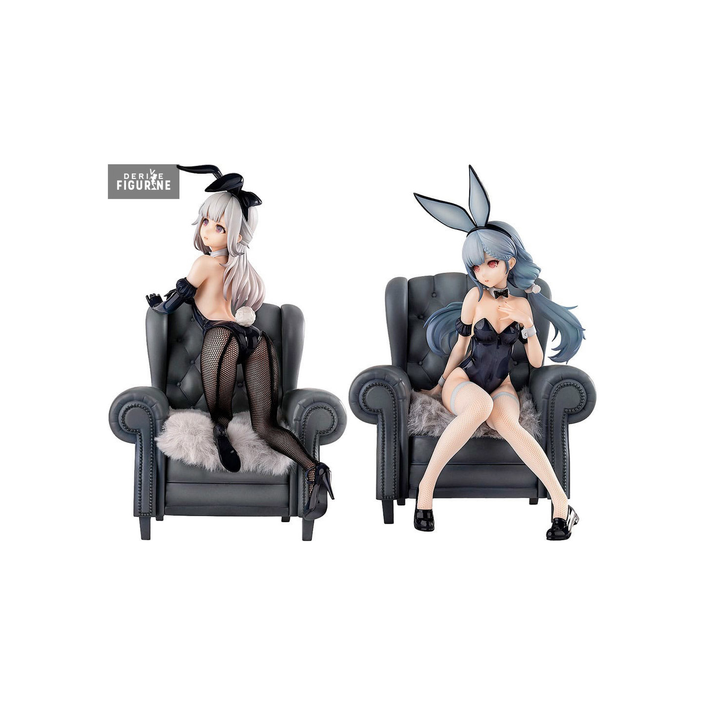 The pack of two Jin Hua and Qiao Er Combinatorial figurines from the "SSR Yi Ren Guan - House of Unhumans" series, Bunny version, is an exceptional collector's item that offers an elegant and charming scene. These two characters, Jin Hua and Qiao Er, are depicted with meticulous attention to detail, capturing their beauty and sophistication. What sets this pack apart is not only the quality of the figures, but also the furniture set that comes with them. You will find two armchairs that can be combined to form a sofa, offering a variety of display options. Additionally, a table is included, adorned with a bottle of wine, adding a touch of elegance to the scene. The set exudes a refined atmosphere, perfect for collectors who want to add a touch of sophistication to their collection. Whether you're a fan of the "SSR Yi Ren Guan" series or simply appreciate figure art, this pack offers a visually stunning scene that will capture your imagination. A stylish addition to any figurine collection.